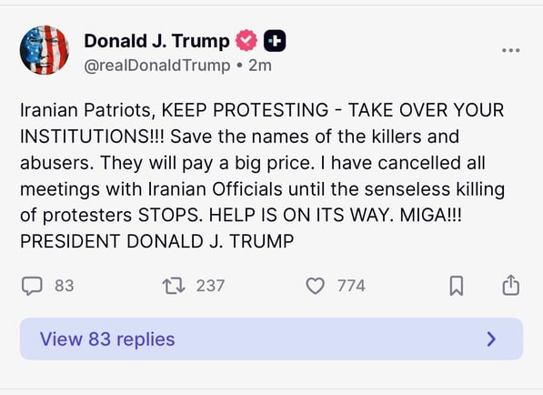 Iran-related risk re-entered the market conversation primarily via energy. Oil prices moved to a multi-week high on concerns that unrest and disruptions could constrain exports. The price reaction has been meaningful in crude, but spillover into broader risk assets has been comparatively muted so far.