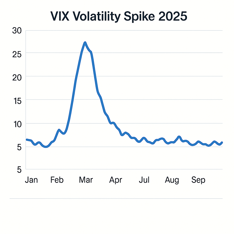 Early in the year, two shocks shook confidence: a brief military flare-up in the Middle East and renewed U.S.–China/global tariff threats. Combined with a hawkish Federal Reserve, the headlines spurred fears of recession. The S&P 500 fell sharply, and the VIX hit panic levels. - Relief and Recovery (Q2–Q3)
