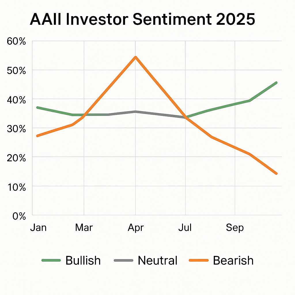 - Retail investors in 2025 were deeply bearish during the spring sell-off, then turned aggressively bullish by fall, often reacting emotionally rather than strategically.